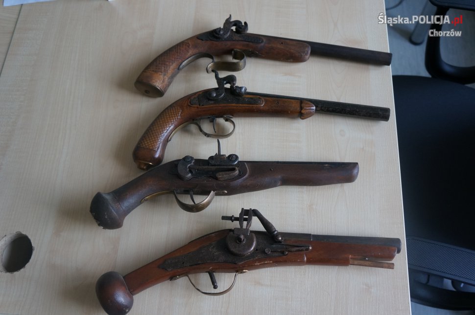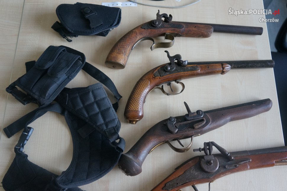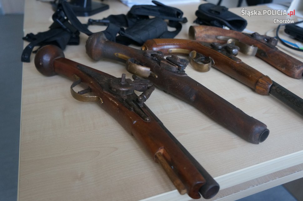 Policjanci z wydziału kryminalnego chorzowskiej komendy zatrzymali mężczyznę, który terroryzował sąsiadów grożąc im bronią. W mieszkaniu agresywnego 66-latka funkcjonariusze znaleźli 4 przedmioty przypominające broń palną, są to prawdopodobnie repliki. O dalszym losie mężczyzny zadecyduje prokurator i sąd.
