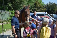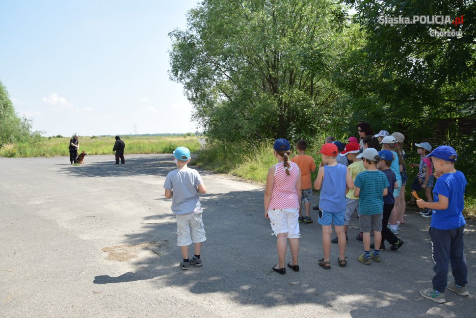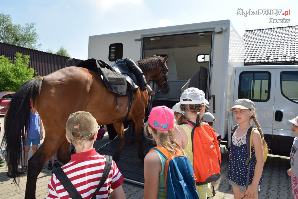 Chorzowskich policjantów odwiedzili uczniowie I klasy Szkoły Podstawowej nr 1 w Chorzowie. W trakcie wizyty zwiedzili siedzibę chorzowskiej policji konnej oraz zapoznali się z pracą policyjnych przewodników psów. Wielką radość sprawiła gościom możliwość kontaktu z czworonogami