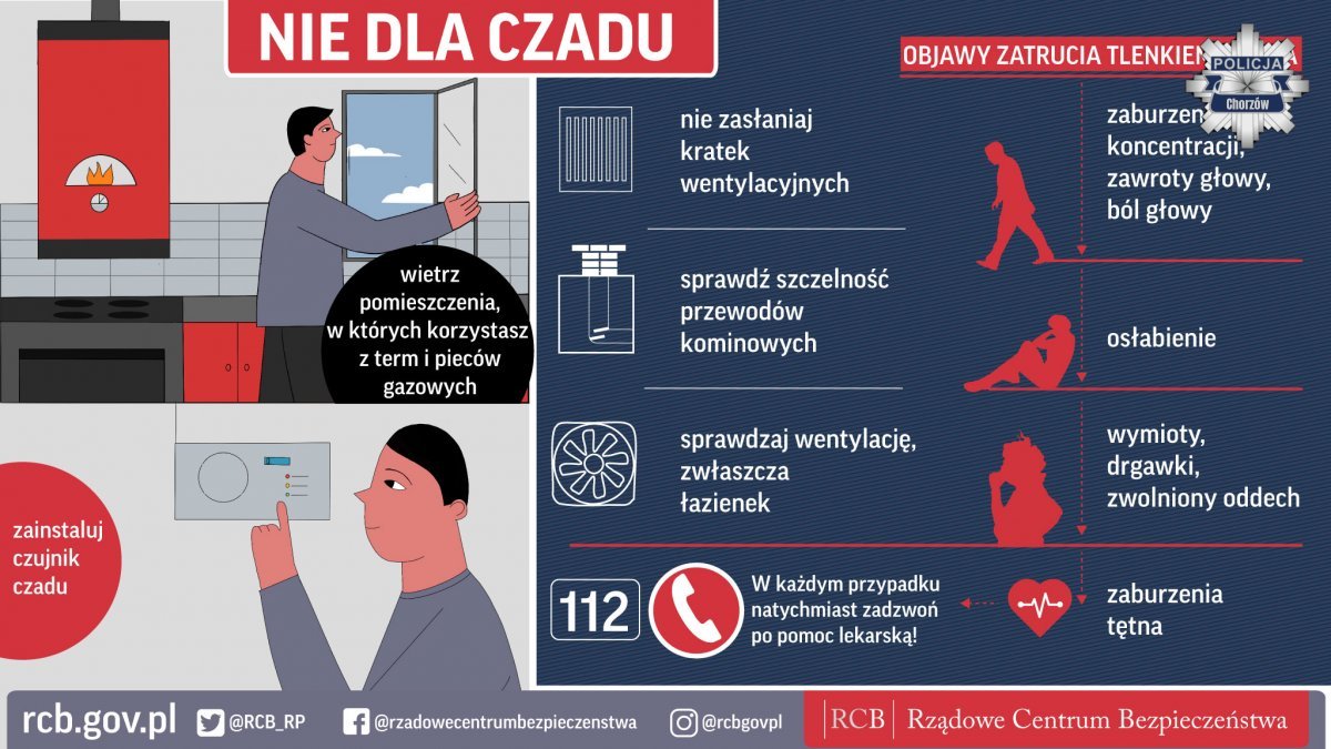 Komenda Miejska Policji w Chorzowie ostrzega, przypomina i apeluje do mieszkańców o zachowanie szczególnej ostrożności. Pamiętajmy o regularnym sprawdzaniu drożności przewodów kominowych oraz wentylacyjnych.