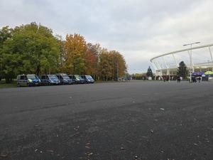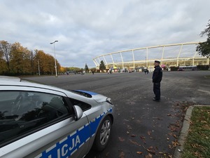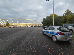 Policjanci dbali o bezpieczeństwo nie tylko na terenie stadionu, ale również na trasach dojazdowych, kierując ruchem i pomagając kibicom bezpiecznie dotrzeć na wydarzenie.