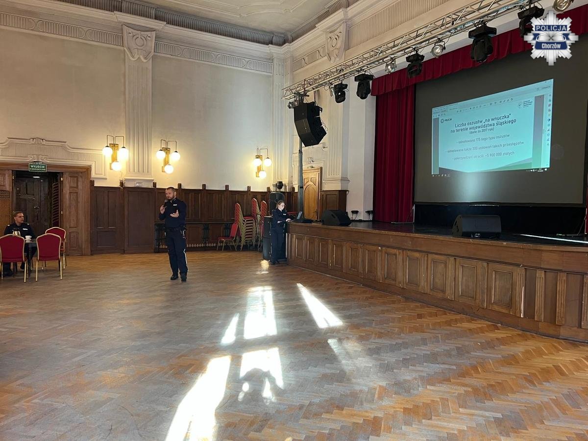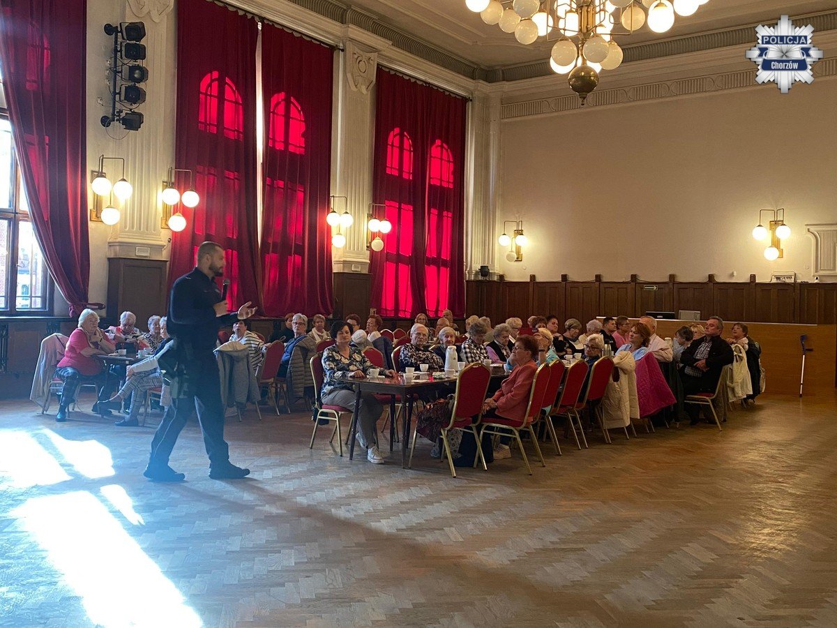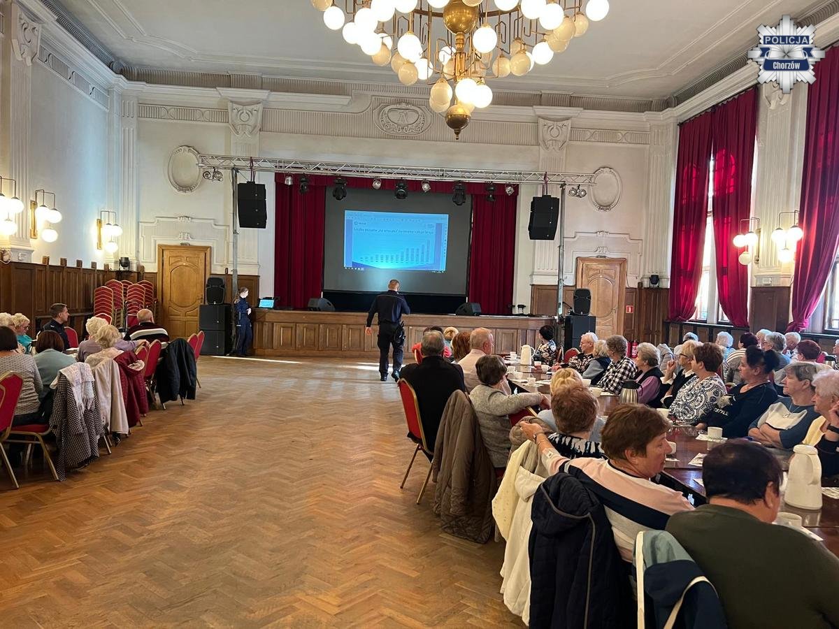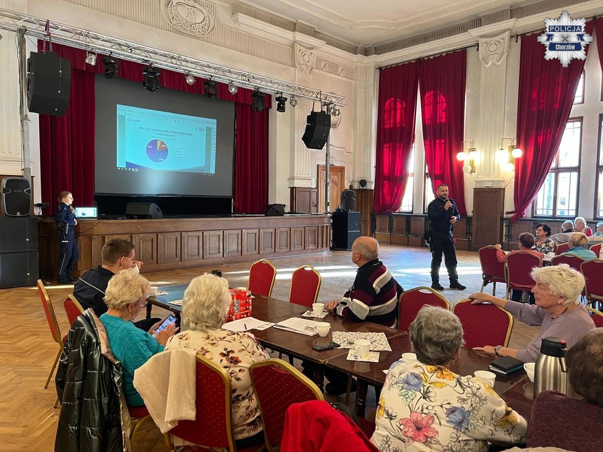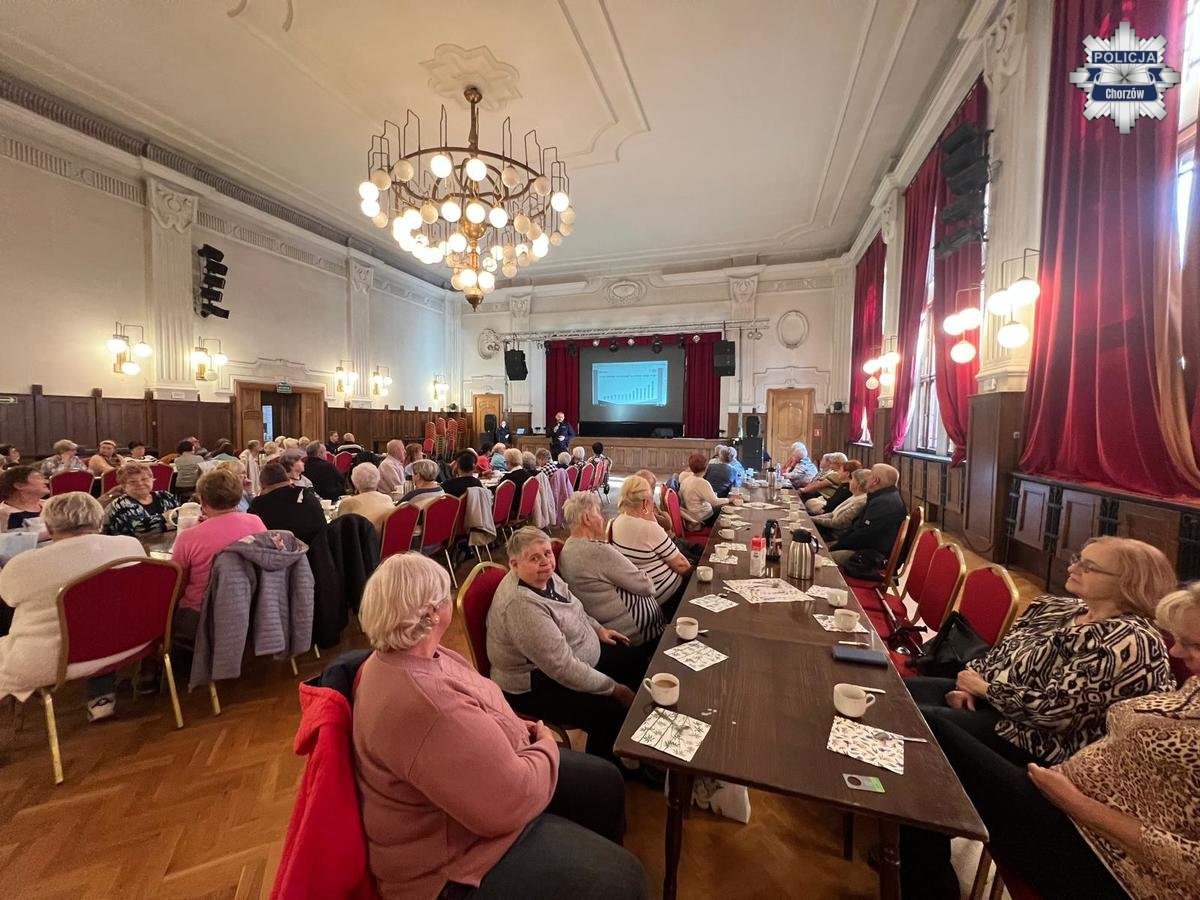 W Klubie Seniora przy ul. Siemianowickiej 59 w Chorzowie odbyło się spotkanie w ramach ogólnopolskiej akcji „Świadome decyzje – Bezpieczny Senior”. Celem przedsięwzięcia było podniesienie świadomości osób starszych w zakresie bezpieczeństwa oraz przeciwdziałanie różnego rodzaju oszustwom. Uczestnicy spotkania mieli okazję dowiedzieć się, jak rozpoznać i unikać sytuacji, które mogą zagrażać ich bezpieczeństwu.