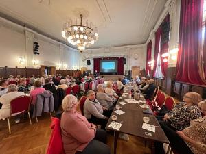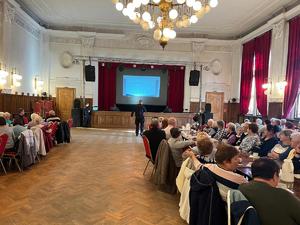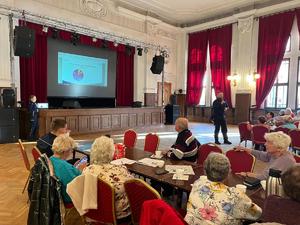 Zebrani seniorzy poznali praktyczne wskazówki, jak reagować w sytuacjach budzących wątpliwości i gdzie szukać pomocy.