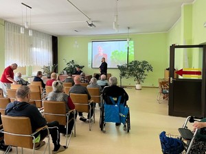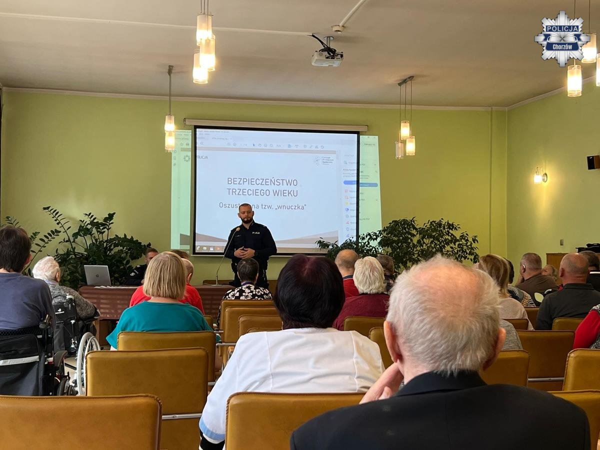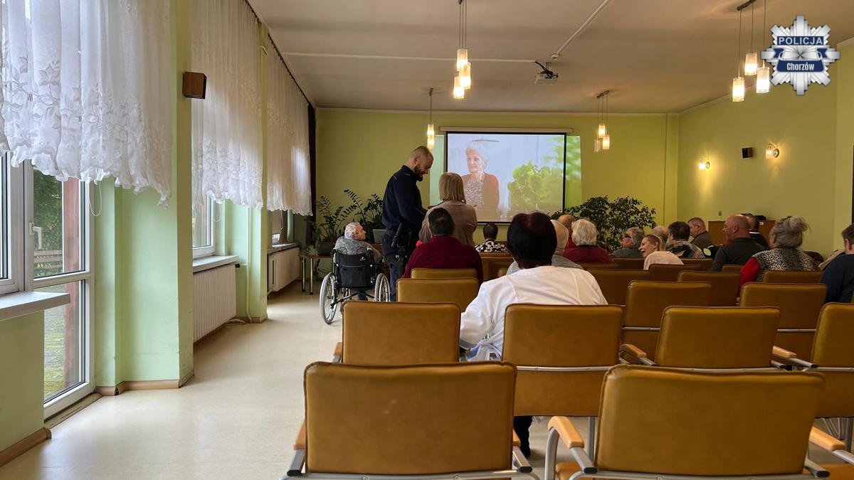 W Domu Pomocy Społecznej przy ulicy Siemianowickiej w Chorzowie odbyło się spotkanie w ramach ogólnopolskiej akcji „Świadome decyzje – Bezpieczny Senior”. Wydarzenie zostało przygotowane w oparciu o prezentację realizowaną w ramach kampanii #ZnamTeNumery#, której celem jest uświadamianie osób starszych o zagrożeniach ze strony oszustów. Prelekcja miała na celu wzmocnienie czujności seniorów i przypomnienie im, jak reagować w sytuacjach mogących zagrażać ich bezpieczeństwu.