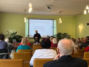 Podczas spotkania zaprezentowano również materiały edukacyjne przygotowane w ramach poradnika „Fałszywa tożsamość – prawdziwe ryzyko”, które w przystępny sposób pokazują, jak rozpoznać próbę oszustwa i jak bezpiecznie zachować się w podobnych sytuacjach. Seniorzy chętnie dzielili się swoimi doświadczeniami i zadawali pytania dotyczące realnych sytuacji, z jakimi mogą się spotkać na co dzień.