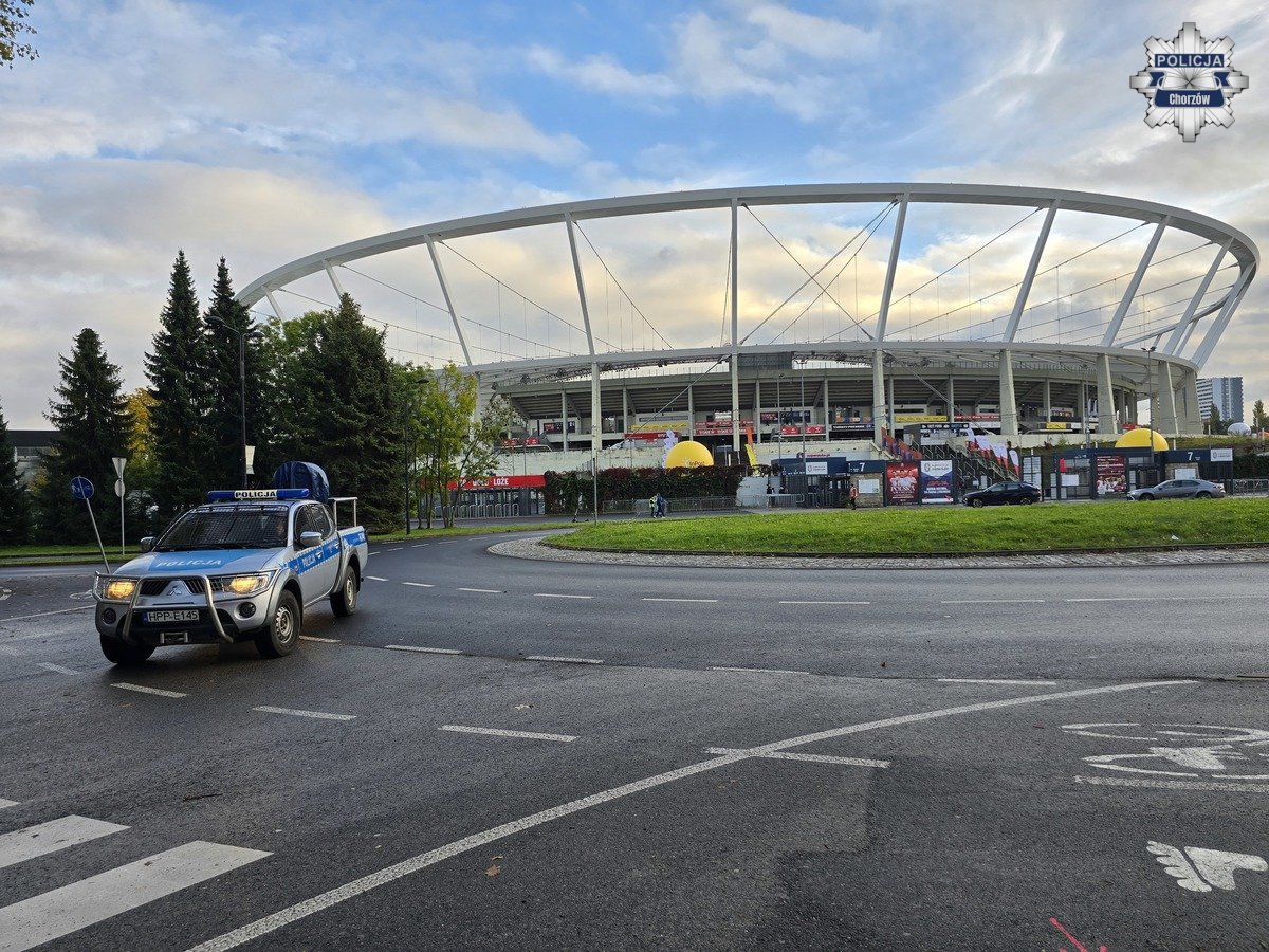 Policja zadbała o bezpieczeństwo podczas sobotniego meczu Ruchu Chorzów z Miedzią Legnica. Spotkanie przebiegało spokojnie i bez zakłóceń. Dzięki sprawnej organizacji wszystko przebiegało w bezpiecznej atmosferze.