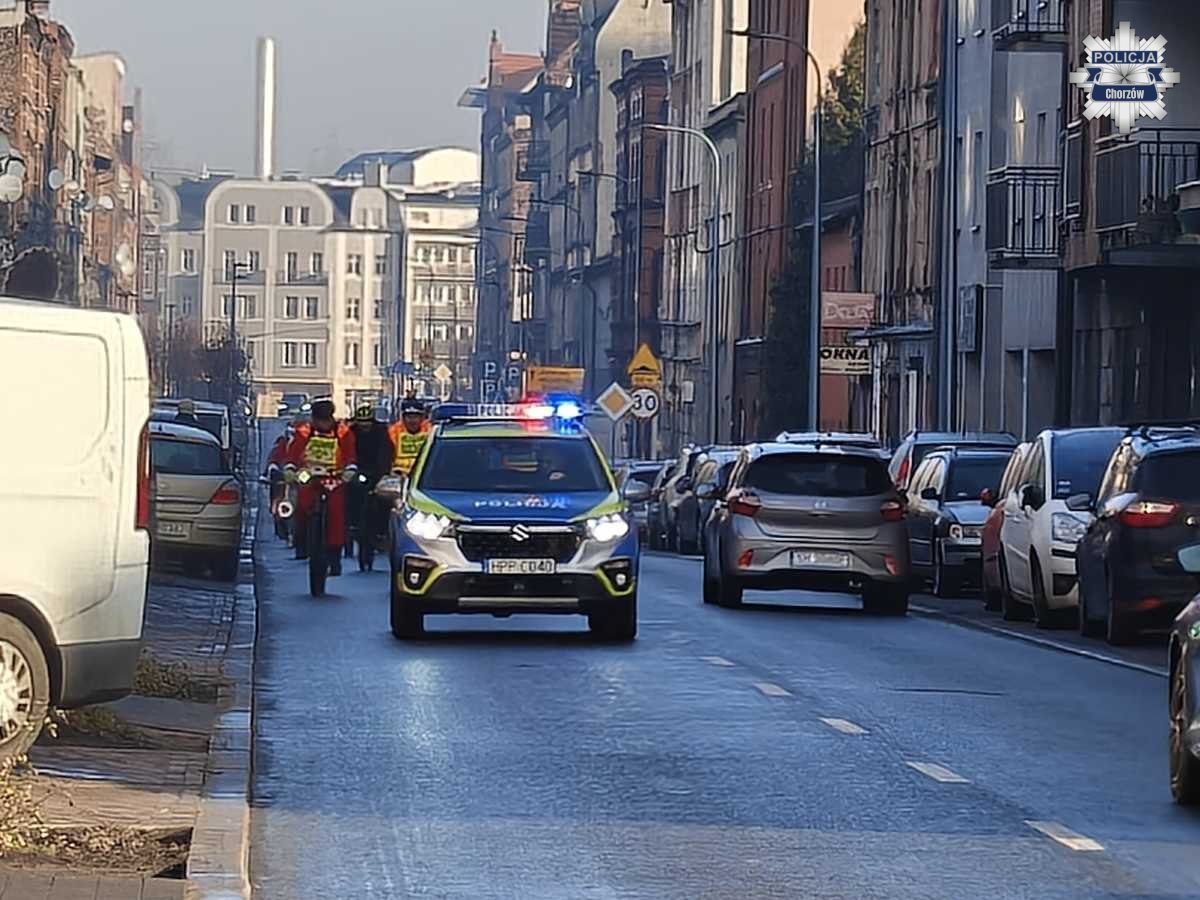 Barwny peleton wyruszył o godzinie 10:00, pokonując kolejne odcinki trasy prowadzącej przez najważniejsze ulice Chorzowa. Policjanci z Wydziału Ruchu Drogowego zabezpieczali przejazd, czasowo wstrzymując ruch pojazdów oraz kierując kierowców na objazdy tam, gdzie było to konieczne. Ich praca zapewniła rowerzystom komfortowy i bezpieczny udział w wydarzeniu.