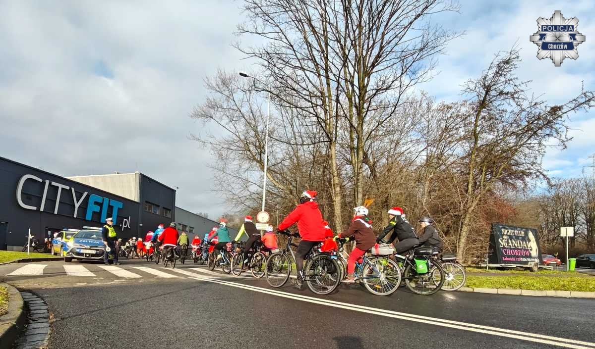 Policjanci z Chorzowa czuwali nad bezpieczeństwem Parady Mikołajów na Rowerach