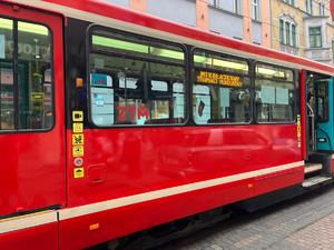 Mikołajkowy tramwaj mundurowy przejechał ulicą Wolności w Chorzowie