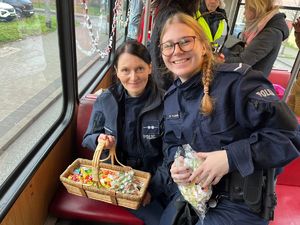 Na pokładzie tramwaju podróżował także Mikołaj, któremu towarzyszyły resortowe maskotki oraz artyści Roko i Colino, tworząc wyjątkową, świąteczną atmosferę. „Mikołajkowy tramwaj mundurowy” kursował w godzinach 10:00–12:00 na trasie od Rynku do ulicy Bałtyckiej, dostarczając pasażerom nie tylko dobrej zabawy, ale także cennych wskazówek dotyczących bezpieczeństwa.