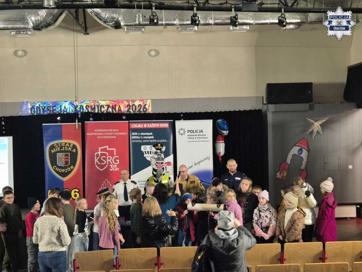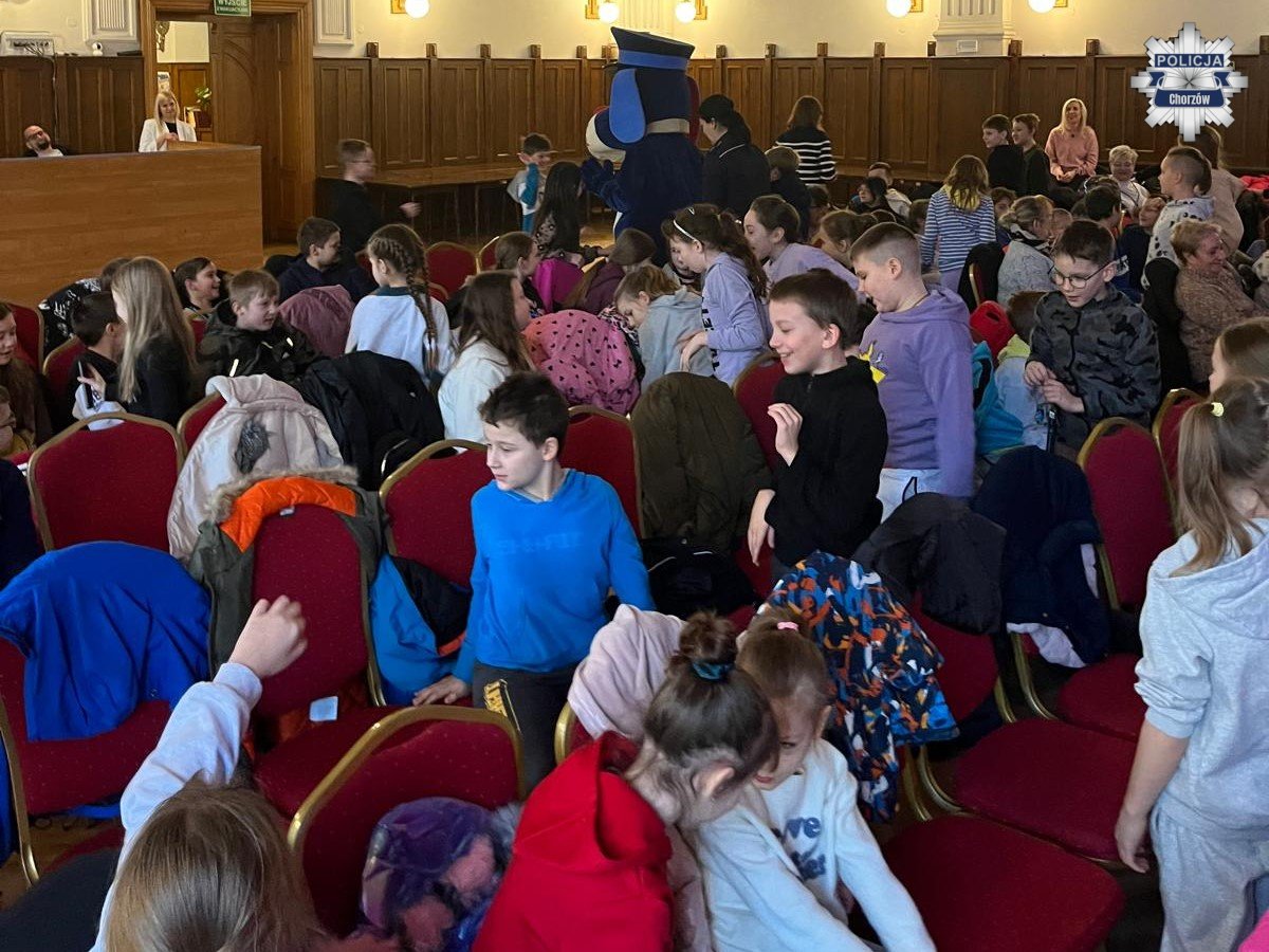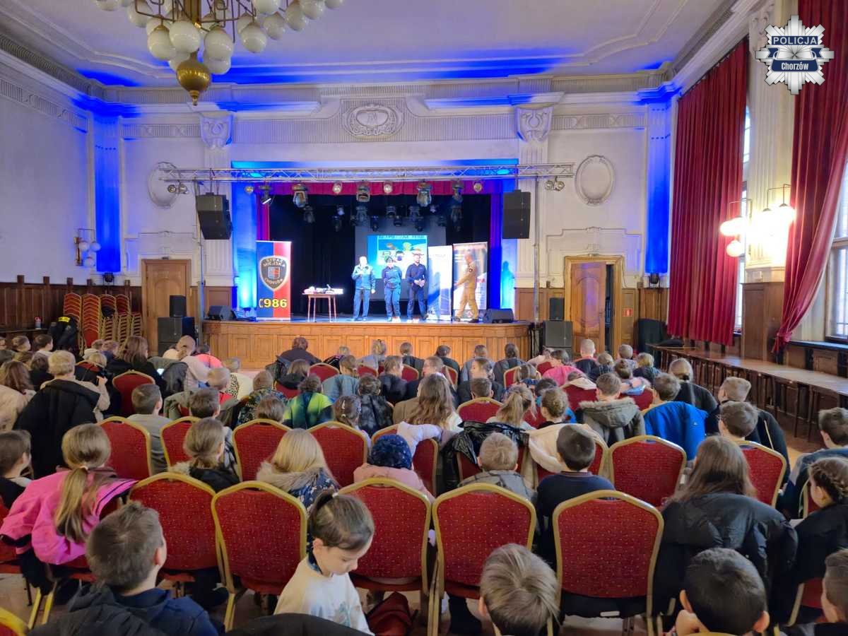 W ubiegłym tygodniu policjanci z Komendy Miejskiej Policji w Chorzowie przeprowadzili cykl spotkań profilaktycznych w ramach działań „Kręci mnie bezpieczeństwo w zimie”. Przedsięwzięcie skierowane było do uczniów szkół podstawowych z terenu miasta. Celem spotkań było przypomnienie najmłodszym zasad bezpiecznego zachowania podczas zimowego wypoczynku oraz w codziennym poruszaniu się po mieście w trudnych warunkach atmosferycznych.