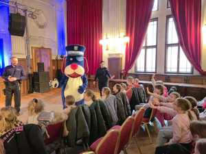 Dużym zainteresowaniem najmłodszych cieszyła się obecność policyjnej maskotki Sznupka oraz maskotki Straży Miejskiej, które aktywnie uczestniczyły w zajęciach i w przystępny sposób przypominały o zasadach bezpieczeństwa.