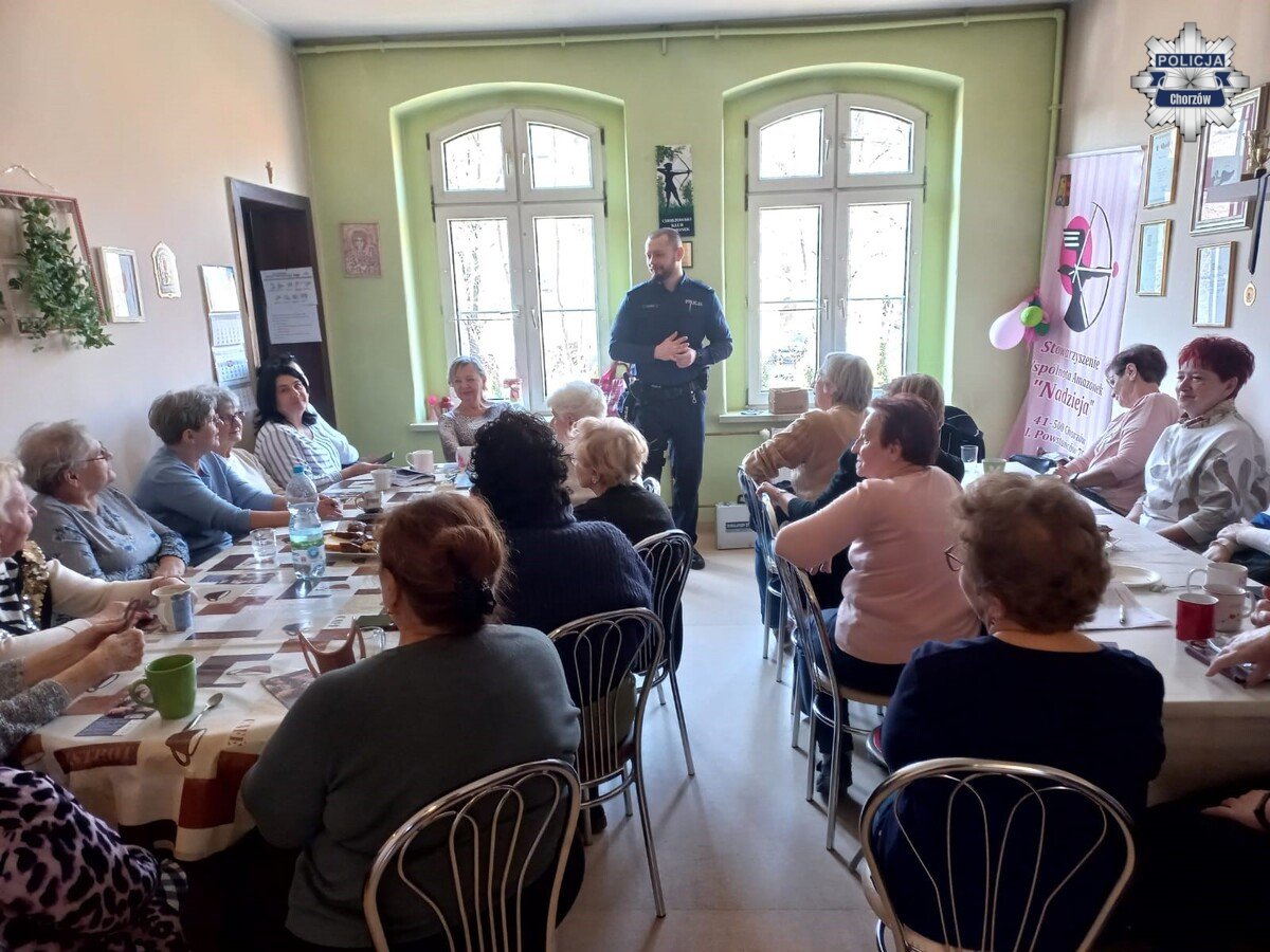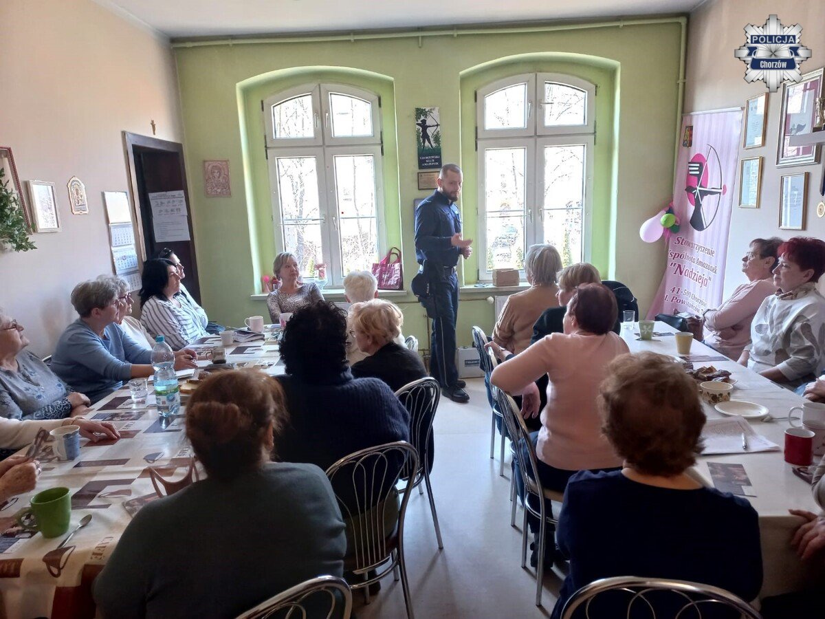 W ubiegłym tygodniu policjanci z Zespołu Profilaktyki Komendy Miejskiej Policji w Chorzowie wzięli udział w spotkaniu z członkiniami Klubu Amazonek. Wydarzenie odbyło się w siedzibie klubu przy ul. Powstańców 70. Tematem rozmów były zagrożenia związane z oszustwami i sposoby, jak się przed nimi chronić.