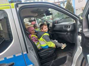 W trakcie zajęć przedstawiono także schemat postępowania w przypadku oddalenia się od rodziców lub opiekunów w miejscu publicznym. Podkreślono, jak ważne jest zachowanie spokoju oraz zwrócenie się o pomoc do osób zaufanych, takich jak policjant, pracownik ochrony czy sprzedawca.