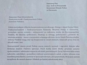 List gratulacyjny dla chorzowskich policjantów z okazji Święta Policji